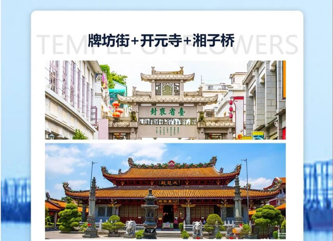 早餐后游覽【開元寺】(游覽時(shí)間不低于30分鐘)位于鯉城區(qū)西街,是中國東南沿海重要的文物古跡,也是福建省內(nèi)規(guī)模較大的佛教寺院。該寺始創(chuàng)于唐初垂拱二年(686年),初名蓮花道場,開元二十六年(738年)更名開元寺?,F(xiàn)存主要廟宇系明、清兩代修建,南北長260米,東西寬300米,占地面積78000平方米?!疚鹘帧浚ㄓ斡[時(shí)間不低于30分鐘)是泉州較早開發(fā)的街道和區(qū)域,早在宋朝,它就已經(jīng)象征了泉州的繁榮,它還是泉州市區(qū)保存較完整的古街區(qū),保留著大量具有歷史原貌的建筑。前往前往【蟳埔村】(游覽時(shí)間不低于60分鐘),蟳埔村位于福建省泉州市豐澤區(qū)東海社區(qū)的一條小漁村,這里居住的是古時(shí)阿拉伯人的后裔。這里的女人們頭上戴著鮮花做的漂亮的簪花圍,戴著丁香耳墜,穿著大裾衫、寬腳褲,形成了一道獨(dú)特的風(fēng)情,她們和惠安女、湄州女一起并稱福建三大漁女,這里還有別具特色的民居“蚵殼厝”。體驗(yàn)潯埔村地方民俗,風(fēng)土人情?!九抠?zèng)送插花,體驗(yàn)潯埔漁村民俗】隨后前往平潭酒店入住休息。