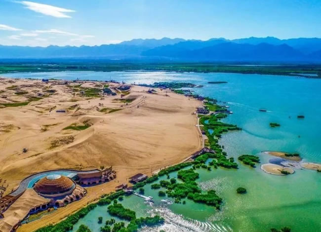 早餐后游覽國家 5A 級(jí)景區(qū)【沙湖旅游區(qū)】(含門票+大船,參觀約 2.5 小時(shí)),在這里,大漠金沙的豪放粗獷與碧湖葦蕩的恬靜秀美天然的融合在一起,構(gòu)成一派大漠水鄉(xiāng)的沙湖 奇觀,湖水、沙山、蘆葦、飛鳥、游魚、荷塘在毛烏素大漠之上,營(yíng)造出中國絕無僅有的勝地。