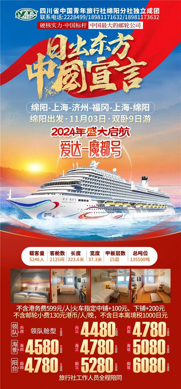 綿陽中旅假日旅行社于2024年10月9日在市工會大廈成功舉行“愛達·魔都號豪華郵輪9日游”旅游線路推薦會?,F(xiàn)場主持人向到場的嘉賓們詳細(xì)的介紹了濟州、福岡等地的風(fēng)土人民、美食、美景以及出游的相關(guān)注意事項等內(nèi)容,受到了嘉賓們的熱烈歡迎和關(guān)注。服務(wù)熱線:0816-2228499/2238477 。