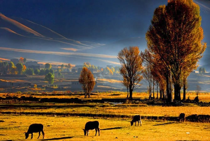 【康南藏寨】:該村寨以前是當?shù)赝了举F族手下藝人工匠聚居之地,世代傳承;每年的7月份是當?shù)厥⒋蟮奶韫?jié),8月份是選美節(jié),9月份是賽馬節(jié),被評為全縣重點民俗文化村。晚上可自費參加藏羌歌舞晚會220元/人。