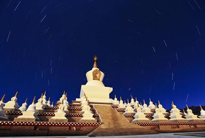 這一天我們的車將行駛在素有“世界屋脊”“世界第三極”的青藏高原。早餐后欣賞“光與影的世界”【新都橋】,翻越【高爾寺山】(海拔4412米),若天氣晴朗,則有幸在山頂一睹蜀山之王【貢嘎山的風采】(四川最高峰,海拔7556米,高高的山峰聳立天際,非常的壯觀)抵雅礱江畔康巴小城【雅江】后穿越【剪子彎山隧道】(長228米)接著翻越【卡子拉山】(海拔4718米),來到有著“高原明珠”“世界高城”之稱的【理塘】途中自費參加茶馬古道生活體驗營或天域牧場(自助石板燒烤、穿藏裝、騎馬)觀【毛埡大草原】風光,給你一種想策馬奔騰的感覺,感受了遼闊的大草原,我們將翻越形是兔子的【兔兒山】,遠觀就像兔子的耳朵特別的可愛。之后翻越最為壯觀的、青藏高原最大的古冰體遺址稻城古冰帽【海子山自然保護區(qū)】(海拔4500米)。(海子山是由1145個大小海子和嶙峋怪石組成。猶如上帝失手撒下的一千顆鉆石一般閃爍在山間,其規(guī)模密度為中國乃至世界規(guī)模最大最典型的古冰帽遺跡,精妙絕倫的天然巖畫—鹿子圖騰)。后前往桑堆高原補氧站(高原旅游知識宣傳點)時間10-20分鐘、之后欣賞沿途迷人風光、世外桃源般藏式村寨,觀稻城尊勝白塔后,抵達最后的香巴拉【稻城】。
