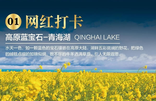 早餐后乘車(chē)前往【茶卡鹽湖】(含門(mén)票,不含小火車(chē),游覽不低于3小時(shí))茶卡鹽湖,中國(guó)的天空之鏡。風(fēng)光旖旎,景色優(yōu)美。當(dāng)你踏入茶卡鹽湖的那一刻,就仿佛進(jìn)入了一個(gè)夢(mèng)幻般的世界。只見(jiàn)湖面平靜如鏡,將天空、云朵、山巒、樹(shù)木倒映其中,形成了一幅獨(dú)特的水天相接的畫(huà)面。這里的鹽層晶瑩剔透,泛著白光,宛如一面巨大的鏡子,將周?chē)囊磺卸加痴盏们逦梢?jiàn)。漫步湖面如行走在云端之上。茶卡鹽湖是古絲綢之路的重要站點(diǎn),歷史上是商賈、游客進(jìn)疆入藏的必經(jīng)之地。湖面上,時(shí)而碧波蕩漾,時(shí)而有莽莽蒼蒼,集秀麗、壯美于一體,在那里時(shí)仿佛靜止般,天地間是一片純凈的白與藍(lán),就像做了一場(chǎng)幻境的夢(mèng)…這里被國(guó)家旅游地理雜志評(píng)為“人一生必去的55個(gè)地方之一”。贈(zèng)送參觀(guān)青海高原藏寨(免費(fèi)景點(diǎn),游覽時(shí)間不低于1小時(shí))村寨內(nèi)外到處都是飄揚(yáng)的經(jīng)幡,領(lǐng)略藏族的風(fēng)土人情,體會(huì)藏族文化的魅力。此為贈(zèng)送項(xiàng)目,若因客觀(guān)原因(例如關(guān)閉修整、時(shí)間、天氣、道路擁堵等因素)造成無(wú)法參觀(guān)的,則不退任何費(fèi)用。參觀(guān)中國(guó)最美的五大湖泊之首高原明珠—【青海湖二郎劍】(含門(mén)票,不含電瓶車(chē),不含游船,游覽不低于2小時(shí))青海湖是我國(guó)第一大內(nèi)陸湖泊,也是我國(guó)最大的咸水湖。湖面純凈深湛、溫柔恬雅的湖水,滿(mǎn)載著古老而優(yōu)美的傳說(shuō),夾帶著文成公主的相思,是如此的波瀾壯闊、恢宏磅礴,漫步清海湖畔,擁一抹晨曦在心,握一縷格?;ǖ拿髌G于手,不思前塵,不念過(guò)往,心中,只存世事通透的安然......在這里你可以欣賞的水天均呈現(xiàn)青藍(lán)一色,藍(lán)天白云映襯在湖中,水波蕩漾,海風(fēng)拂面,站在湖邊拍照,以天、湖、海岸為背影,沉醉高原的藍(lán)寶石,感受歲月如水時(shí)光靜好。從廣場(chǎng)走到湖邊處,青海湖就在眼前,沿湖邊木制棧道觀(guān)湖散步,有幸可看到湖面上的海鷗在天空翱翔。青海湖的美用再多的語(yǔ)言都是無(wú)法形容的,左邊蔚藍(lán)的湖水,遠(yuǎn)處茫茫草原,牛羊成群,徜徉其中,視野開(kāi)闊,景色優(yōu)美,給您一種心靈的釋放與洗滌。晚住青海湖沿線(xiàn)或西寧。