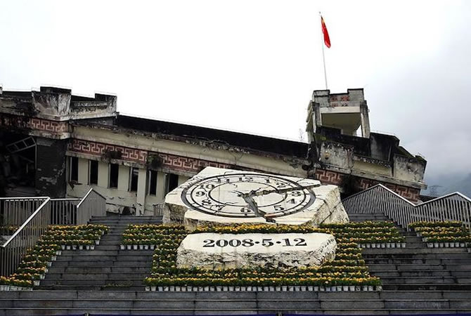 參觀拍照后前往漢旺地震遺址,在汶川地震中,綿竹遭受了巨大災(zāi)難,尤其是漢旺地區(qū)的沿山地區(qū)和山區(qū),房屋幾乎全部坍塌,基本完好的房屋僅占8%左右。地處漢旺的東方汽輪機廠損失慘重。后將其改建成遺址紀(jì)念區(qū),可看到綿竹漢旺鎮(zhèn)、沿山鄉(xiāng)村旅游地震遺址帶,世界最大板房臨時安置區(qū),在漢旺地震遺址區(qū)的“512紀(jì)念鐘”前見證歷史。